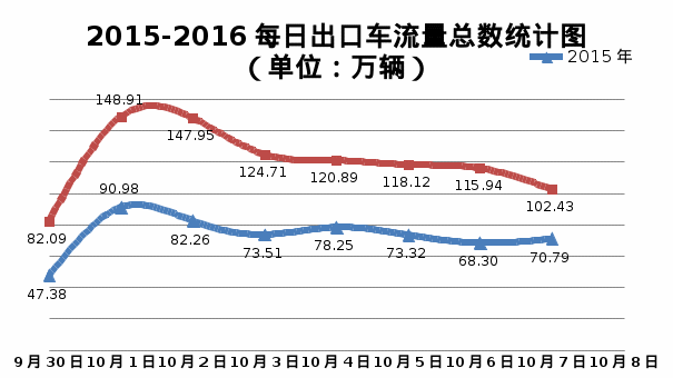 国庆黄金周日均交通量位居全年七个法定节假日之首,今年在超长假期和“节中套节”的双重因素影响下,全省公路出行需求及路网交通流总量增长态势持续,车流总量将再次突破历史值。预计今年我省国庆期间公路客运量为1509.4万人次,同比上升1.91%,高速公路车流总量将达到1050万辆左右,日均131.25万辆,同比上升28%。