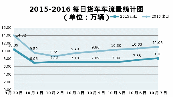 根据历年国庆期间交通流量数据分析,小型客车交通流量初期出行相对集中,返程则相对分散,1、2日达到峰值,此后下降小幅波动,假日末流量降至最低点。小型客车流量占总交通量比例基本在80%以上。