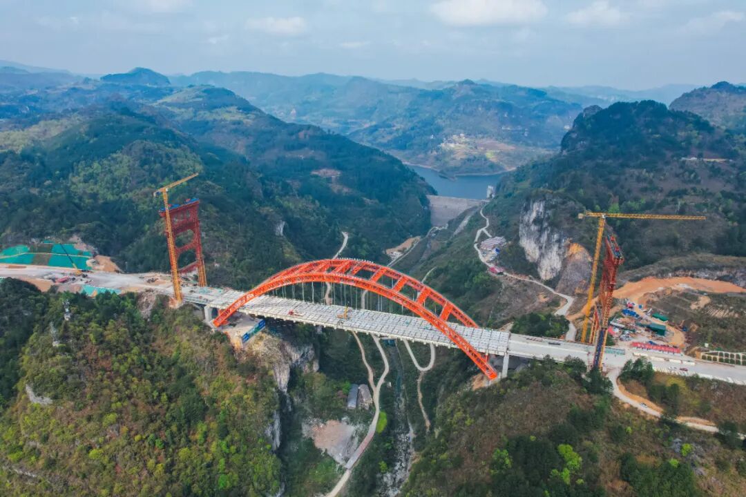 4月1日,贵州交投集团所属桥梁集团承建的贵平T5标马场河大桥完成桥面板安装。马场河大桥位于贵定县盘江镇马场河村,全长381.5米,大桥桥型布置为2×30米预应力砼简支T梁+净跨径260米的中承式钢管混凝土拱+1×30米预应力砼简支T梁,大桥桥面板设计包含7种类型共计408块,最大吊重约18吨。